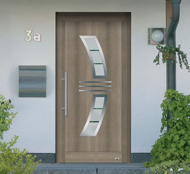 Die Aluminium-Türfüllungen werden mit gängigem und beliebtem Holzdekor foliert. So besteht die Möglichkeit, Türen in Holzoptik mit allen Vorteilen des MAterials Aluminium zu kombinieren